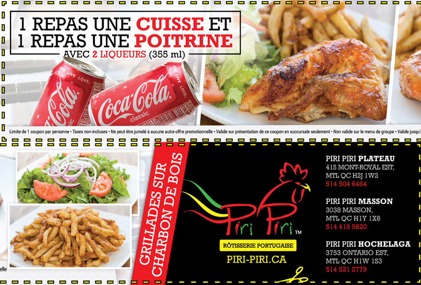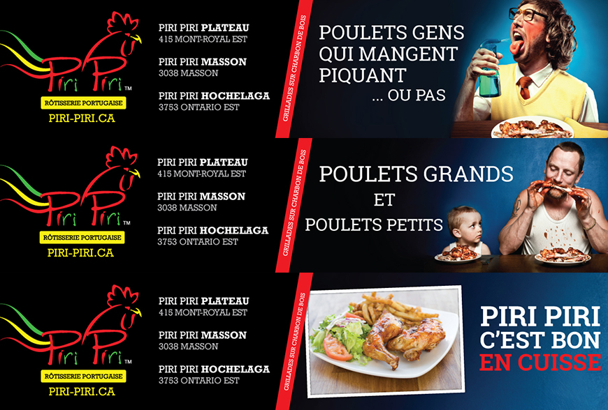 Voici de nombreux exemples de projets que j'ai fait pour le restaurant Piri-Piri. Je suis celui qui s'occupe principalement du brand dans toute ses variations, que ce soit pour des affiches, des animations video ou des annonces.